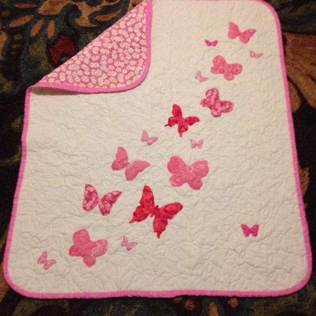 Pinterest is where I find a lot of my ideas. Butterflies-A-Flutter baby quilt by Jenifer Cowles was the inspiration for my first grand niece’s quilt. I made it in the summer of 2015.