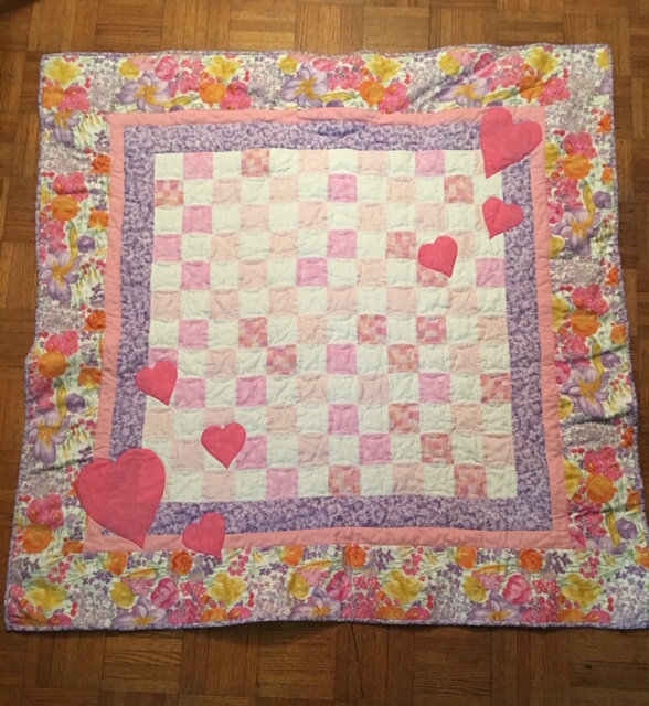 Fast forward to Spring of 2019 and I made the quilt above for my second grandniece. I love the colors of this quilt. And learned, after I made it, that florals were the baby’s room theme. I couldn’t have been happier.