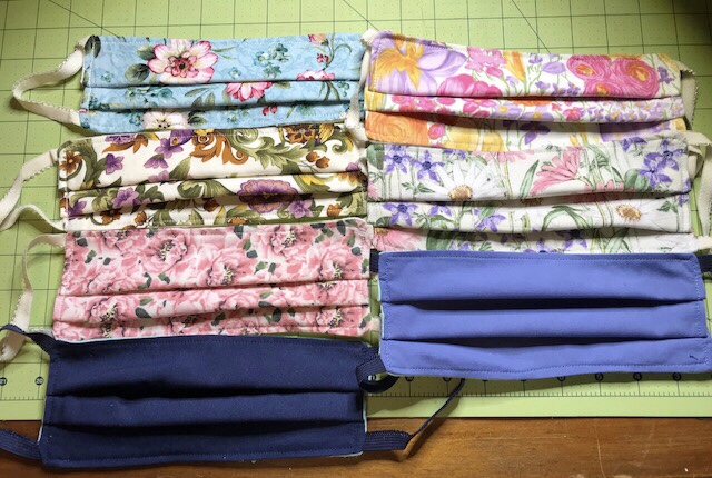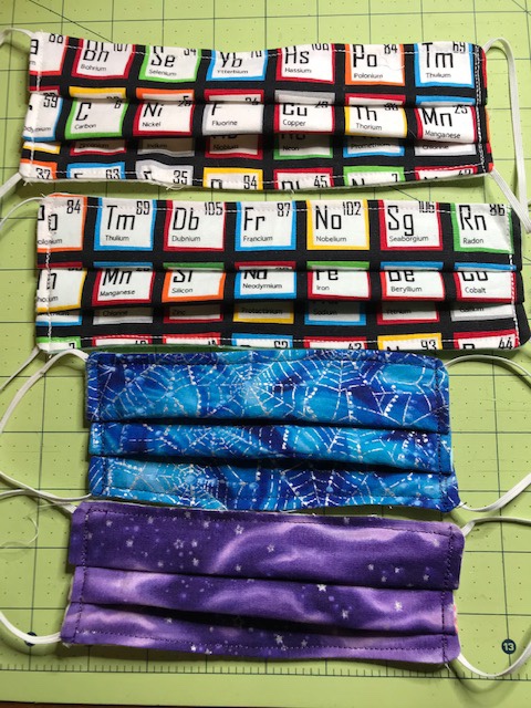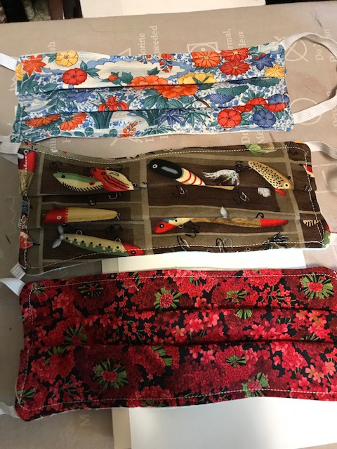 I jumped on the band wagon and made masks with elastic and with ties for family , friends, husbands coworkers who requested them. Below is sampling of masks made