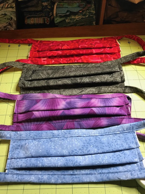 Jenny Doan of Missouri Star Quilt Company has two YouTube videos on making masks for these pandemic times. One tutorial was masks with elastic. Then there was the elastic shortage so Jenny came up with a tutorial for masks with ties. I followed those tutorials for making the masks below.