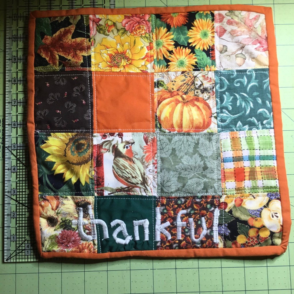 2020 has been a scary year with the pandemic, hurricanes, family unemployment and illnesses, along with the normal ups and downs of life. But, as I made these mini quilts, I was reminded of how many things I am thankful for this year.
