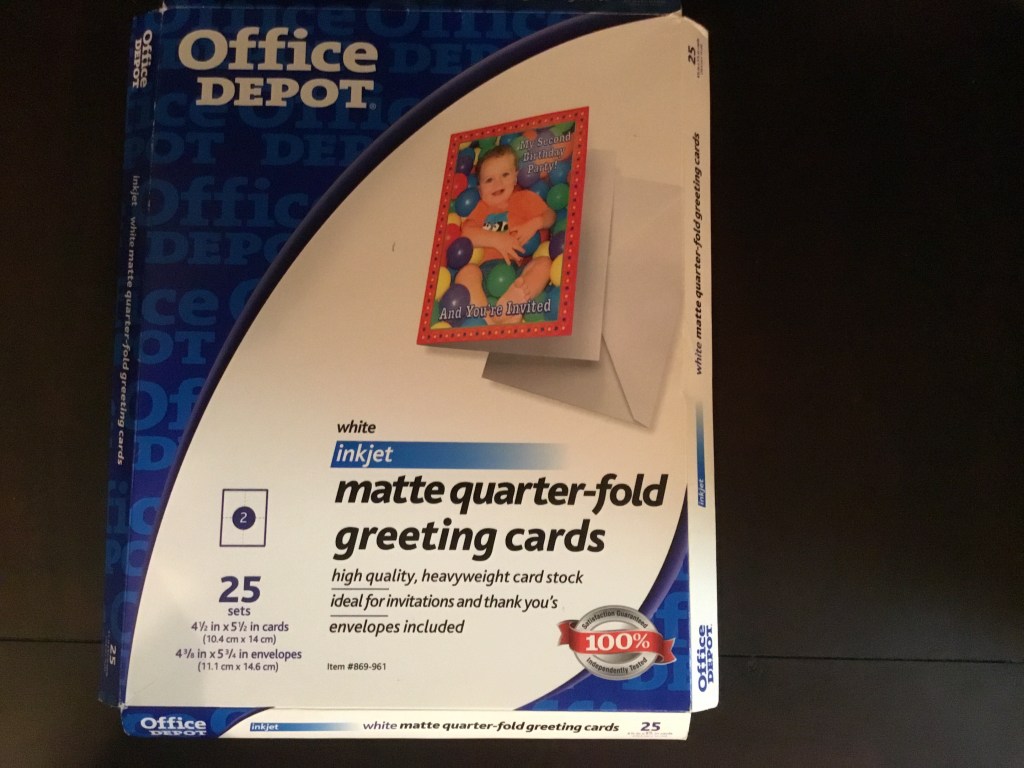 We had some greeting cards from our photography material stash. I simply borrowed those cards. I cut them in 1/2 as I didn’t want quarter fold. I made a raw edge appliqué with fusible batting, stitched it to card stock paper cut to size. Double stick taped to notecard and I have a personalized card.