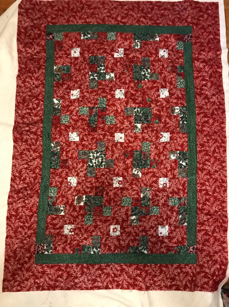 In the meantime, I have restarted quilting this quilt. The pattern is by Eleanor Burns. I’m doing a stitch in ditch quilting.