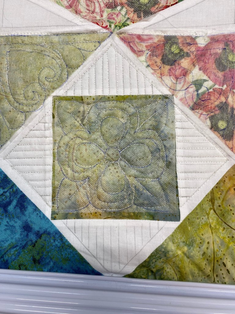 I am using a combination of Stich-N-Washaway sheets and drawing for my templates. It is working well for the custom quilting I’m trying to do here.